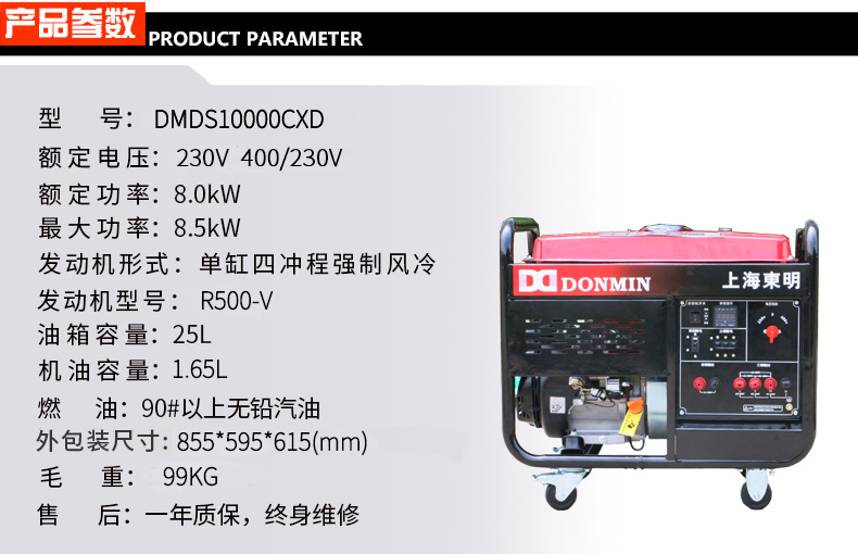 - 工程施工供電優選:上海東明DMDS10000CXD 8kW汽油發電機