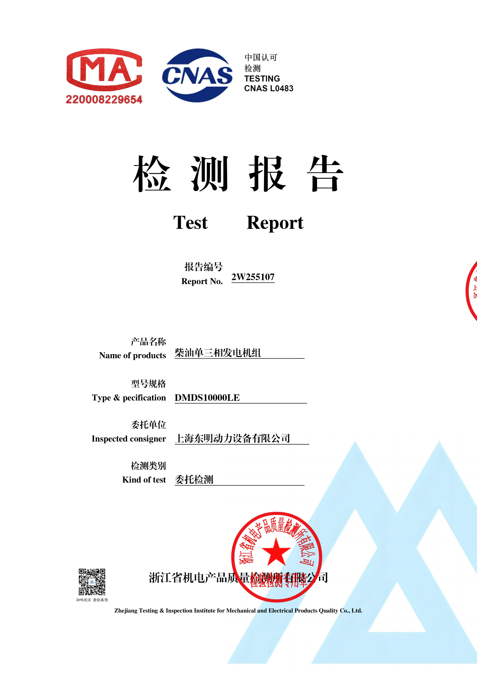 作為專業(yè)級發(fā)電設備,DMDS10000LE具備完整的檢測報告,通過國家相關標準認證,核心保障維度如下:
