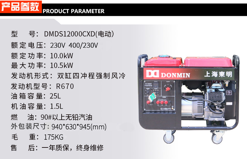 - 工程施工供電優選:上海東明DMDS10000CXD 8kW汽油發電機