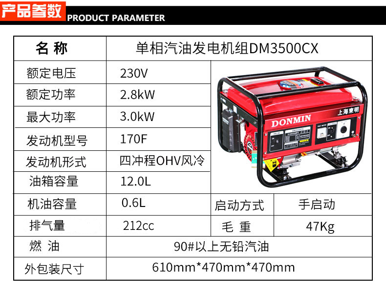 單相3kW小型汽油發(fā)電機(jī)組 DM3500CX