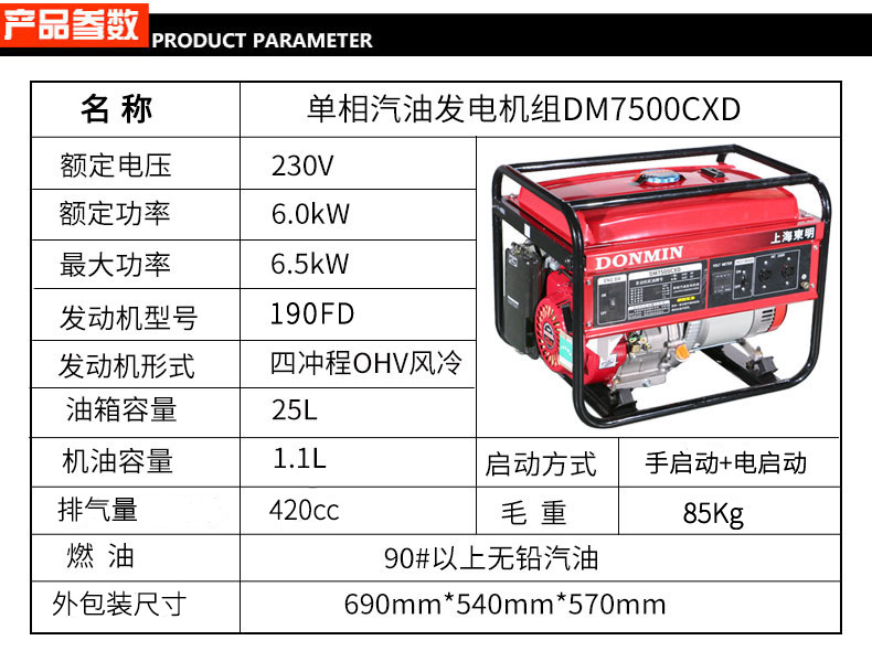 單相6kW小型汽油發電機組【可配備移動輪】DM7500CXD