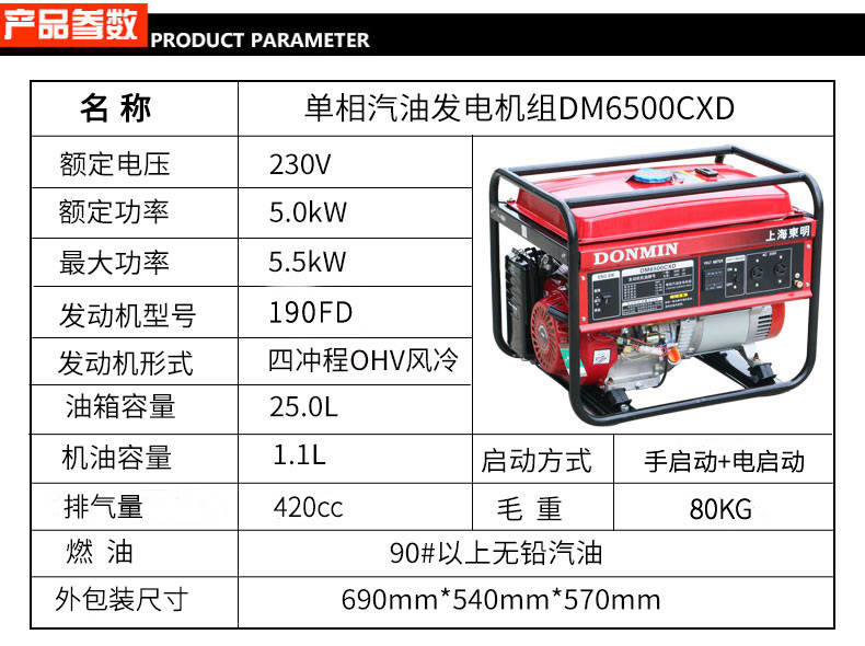 * 表示必填采購(gòu):5KW單相小型汽油發(fā)電機(jī)組【可配備移動(dòng)輪】DM6500CXD